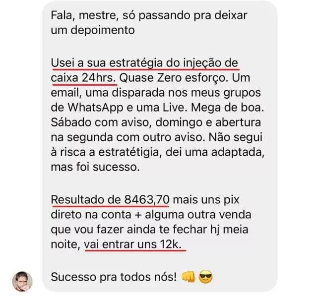 Acordei pela manhã e fui ver a mensagem do meu grupo de mentoria (IMPERIUM) e um dos membros tinha utilizado o Gerador de Caixa 24h e feito um resultado incrível.